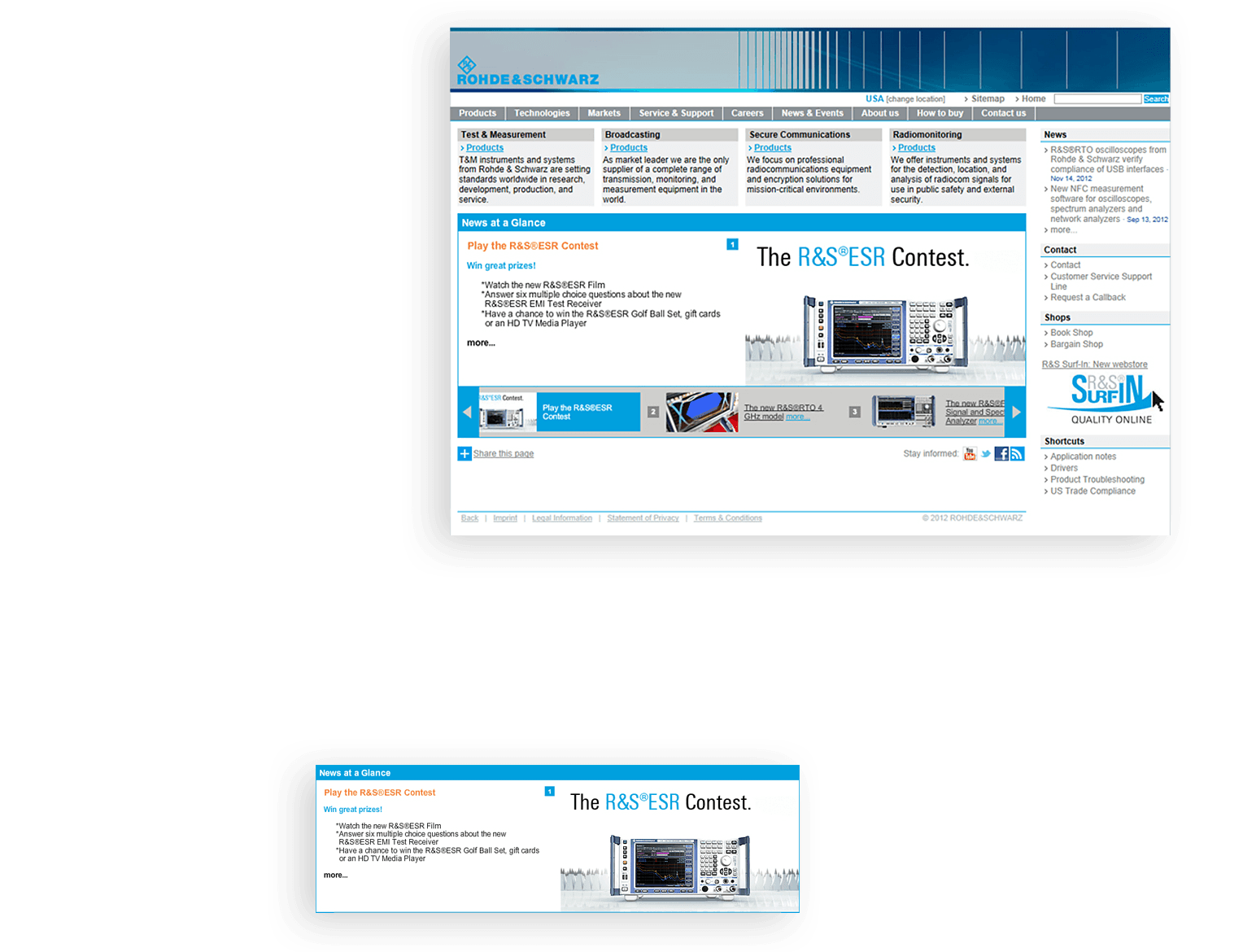 R&S以極簡設計主義為核心,簡化所有繁冗設計,重點表現(xiàn)產(chǎn)品和技術(shù),快速引導用戶瀏覽信息。