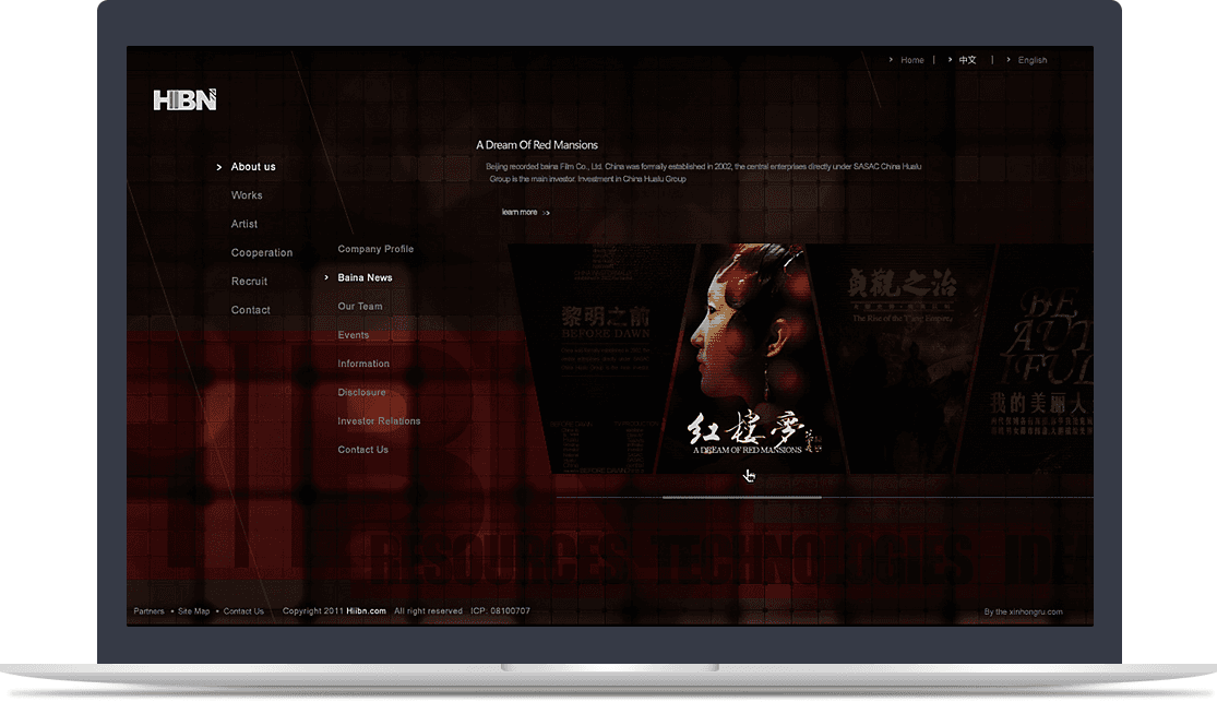 首頁(yè)banner進(jìn)行藝術(shù)化創(chuàng)作,通過(guò)輪播切換的方式展示華錄百納的知名作品,以作品帶動(dòng)品牌,強(qiáng)化企業(yè)品牌價(jià)值