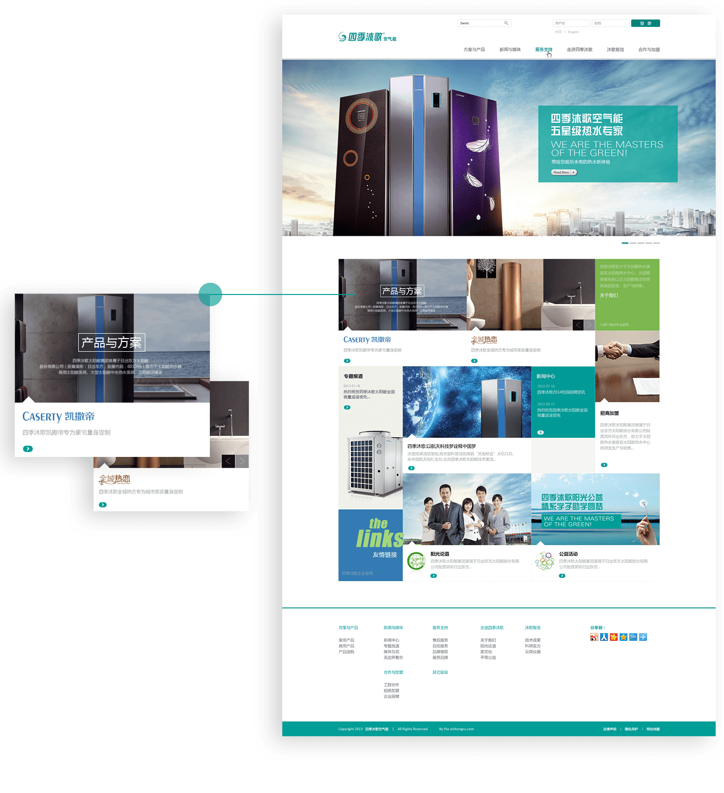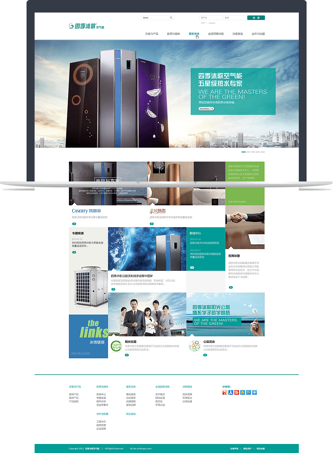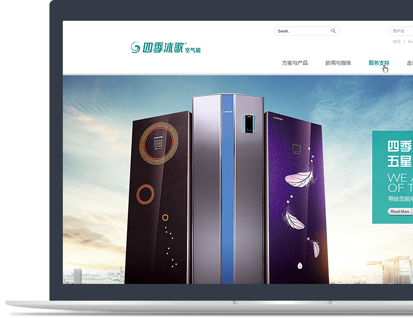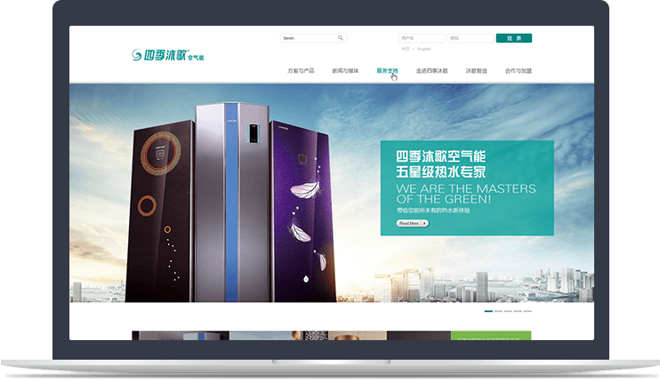 官網(wǎng)著力表現(xiàn)四季沐歌綠色能源產(chǎn)業(yè)的蓬勃朝氣和社會責(zé)任,呈現(xiàn)出科技感、現(xiàn)代感