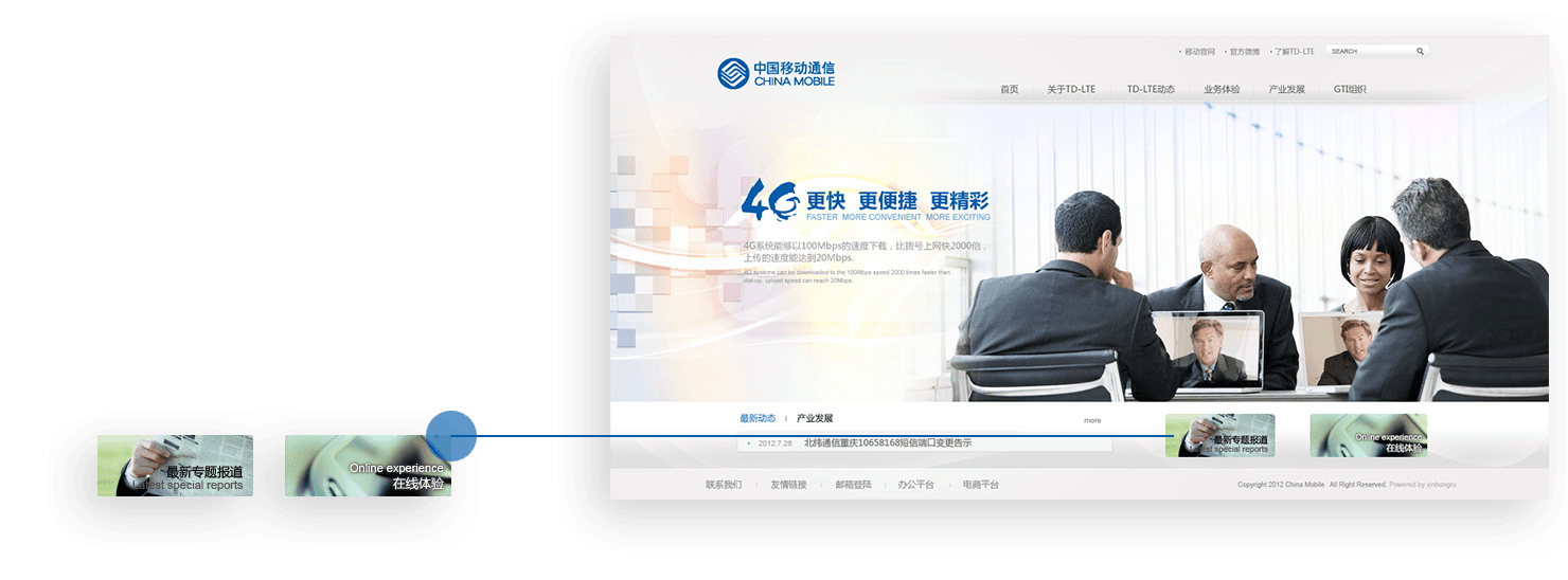 新鴻儒為中國移動提供整體的官網(wǎng)建設(shè)服務(wù),從前期的策劃到設(shè)計(jì)、制作、開發(fā)以及運(yùn)維,