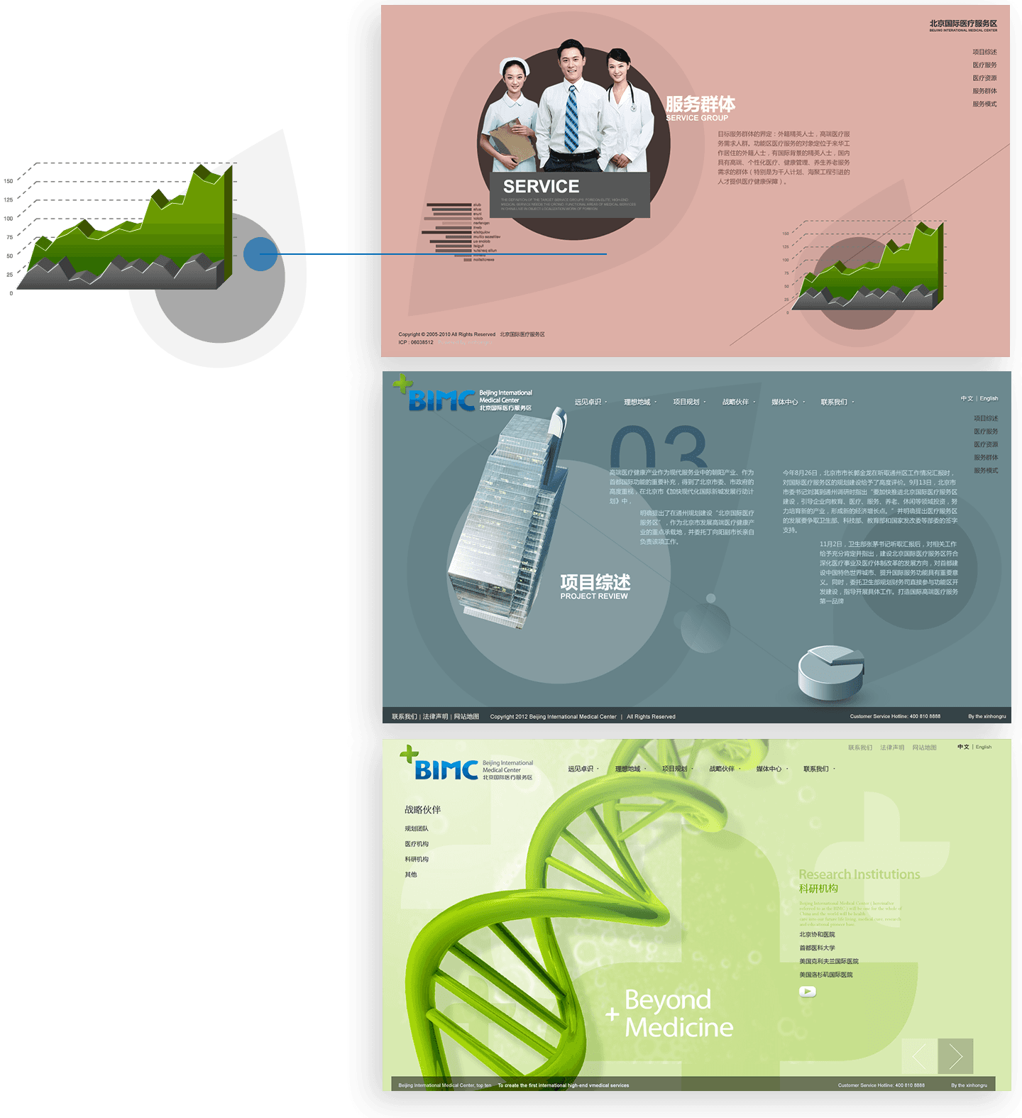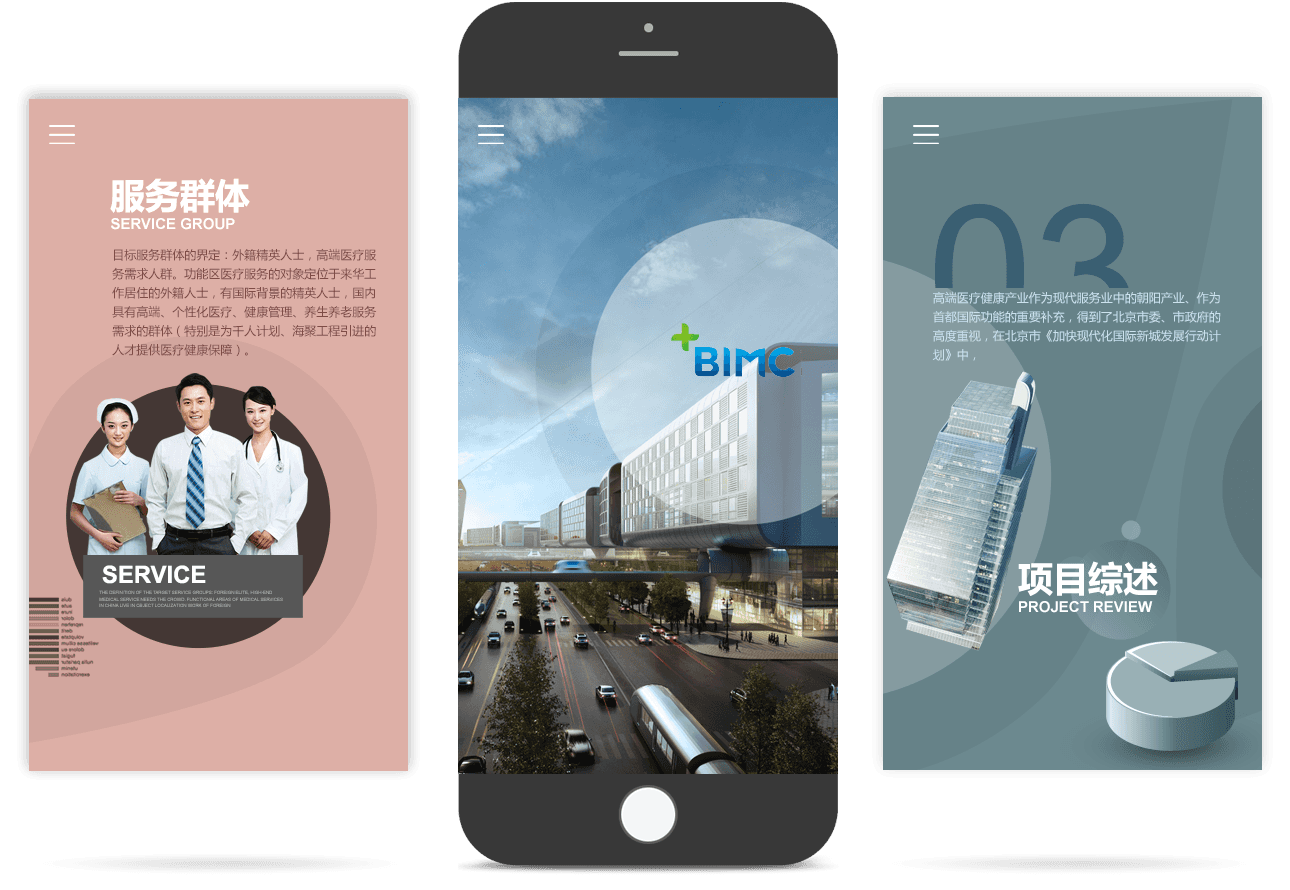 網(wǎng)站利用視頻元素和FLASH技術(shù),實(shí)現(xiàn)三維立體的動(dòng)畫表現(xiàn),展示北京國際醫(yī)療服務(wù)區(qū)全貌,形成強(qiáng)烈的視覺感受,塑造北京國際醫(yī)療服務(wù)區(qū)的品牌形象。同時(shí),網(wǎng)站中大量鼠標(biāo)交互效果,充分調(diào)動(dòng)訪問者的興趣,提升用戶的瀏覽體驗(yàn)。
