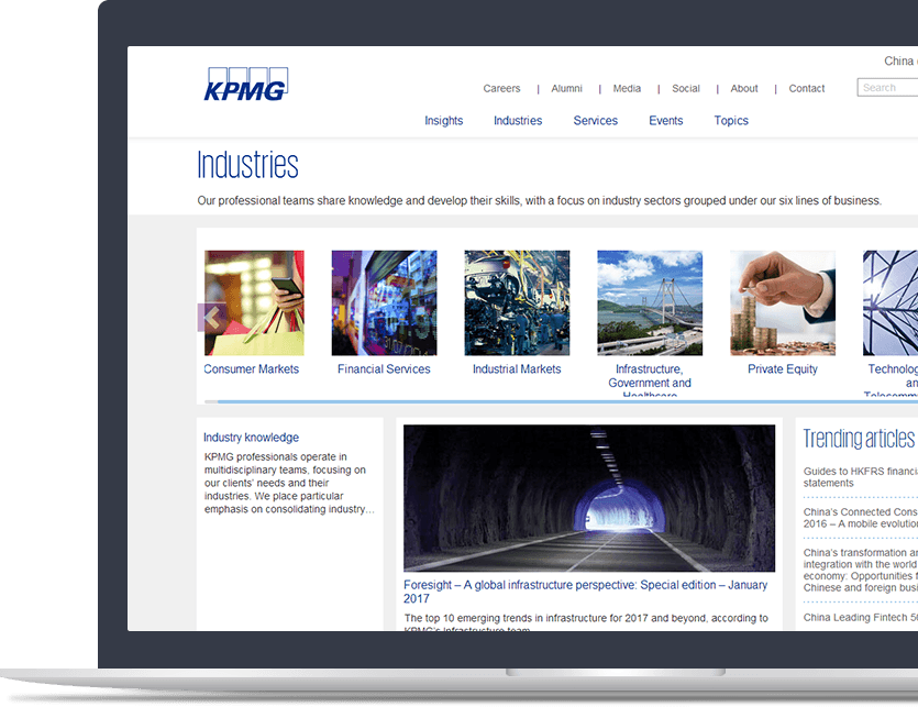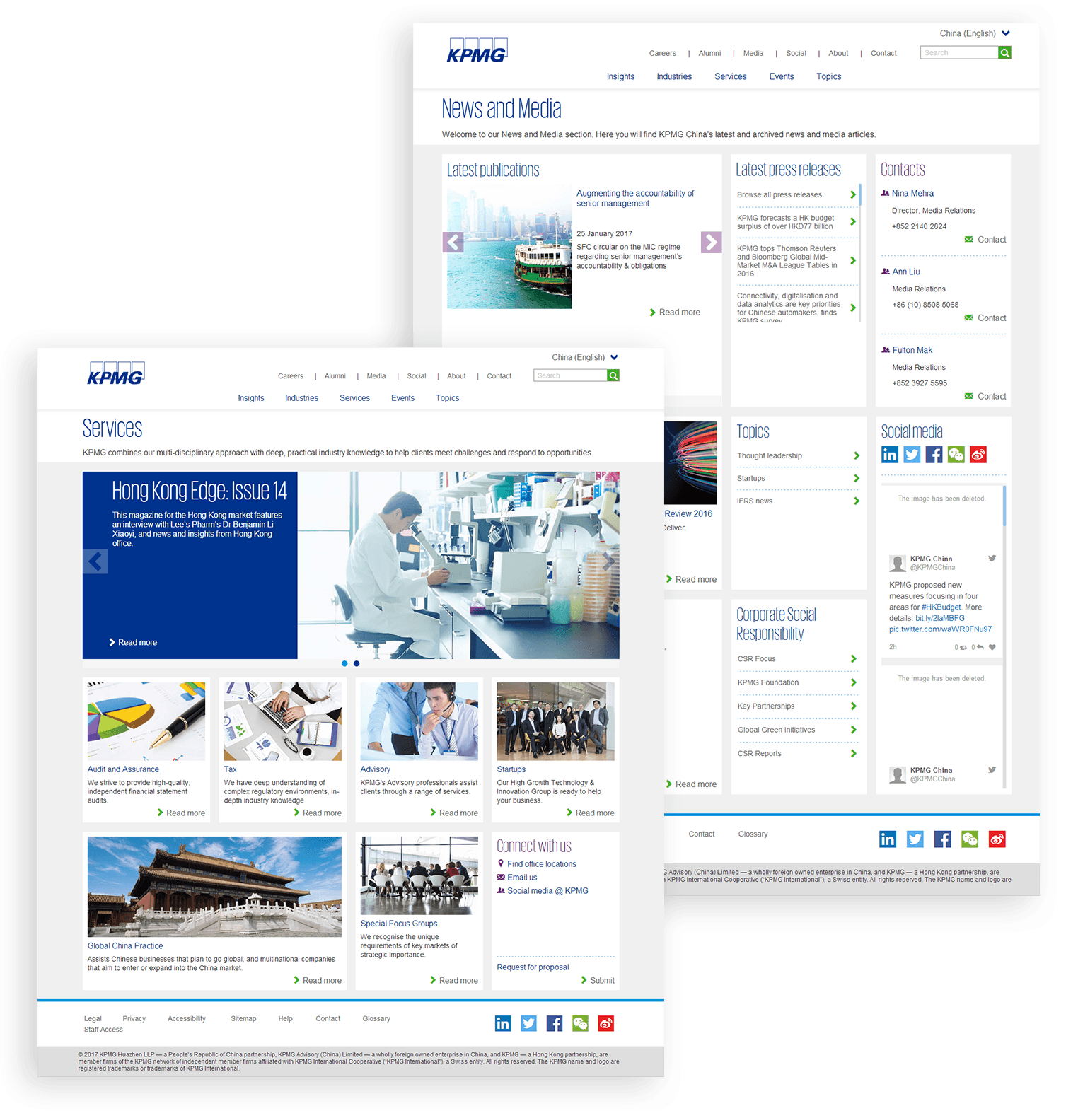 新鴻儒結(jié)合會計行業(yè)做事嚴謹、信息明了的特點,為畢馬威打造以“信息”為主體的品牌官網(wǎng)