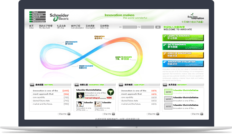 新鴻儒為施耐德電氣提供持續(xù)互聯(lián)網(wǎng)服務(wù),助力施耐德開辟全新領(lǐng)域,其中重要項(xiàng)目包括:施耐德全球創(chuàng)新 平臺(tái)網(wǎng)站建設(shè),施耐德電子商務(wù)平臺(tái)建設(shè),公司內(nèi)部辦公平臺(tái)開發(fā)等。