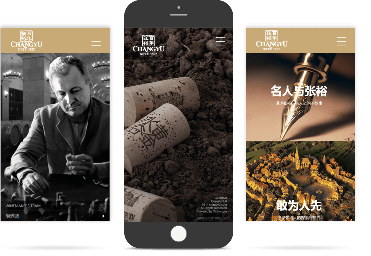 網(wǎng)站設(shè)計(jì)將傳統(tǒng)工藝感與現(xiàn)代科技感有機(jī)融合,氤氳著葡萄酒文化以及百年中國(guó)古典韻 味,彰顯百年張?jiān)5莫?dú)特品質(zhì)感。