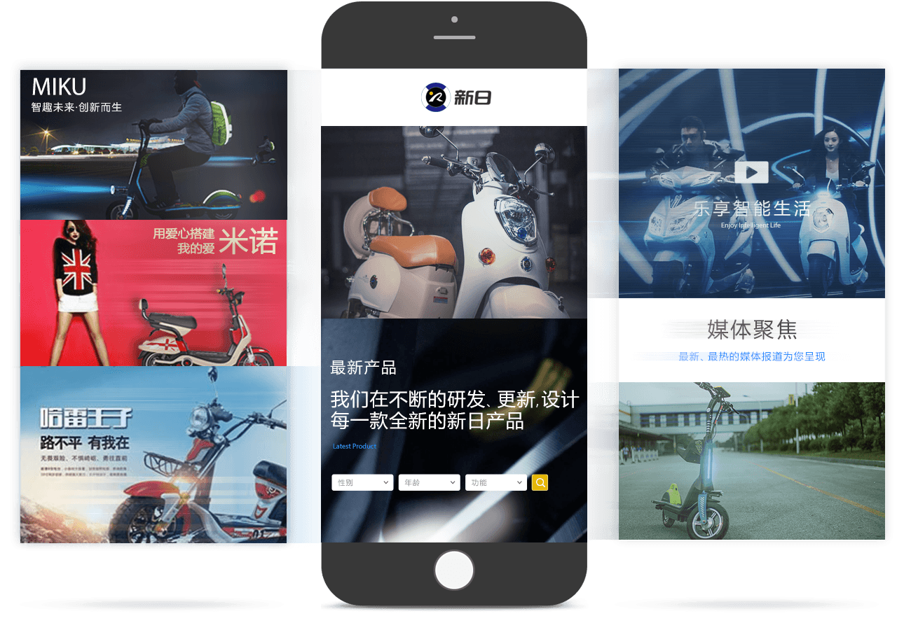 新日電動(dòng)車官網(wǎng)以品牌為核心,以產(chǎn)品為基礎(chǔ),通過(guò)JS/CSS3交互技術(shù)、全屏視頻等方式, 塑造企業(yè)創(chuàng)新、智能的品牌形象。