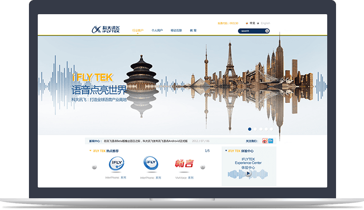 科大訊飛整體頁(yè)面簡(jiǎn)潔、信息高效,互動(dòng)性效果強(qiáng)!