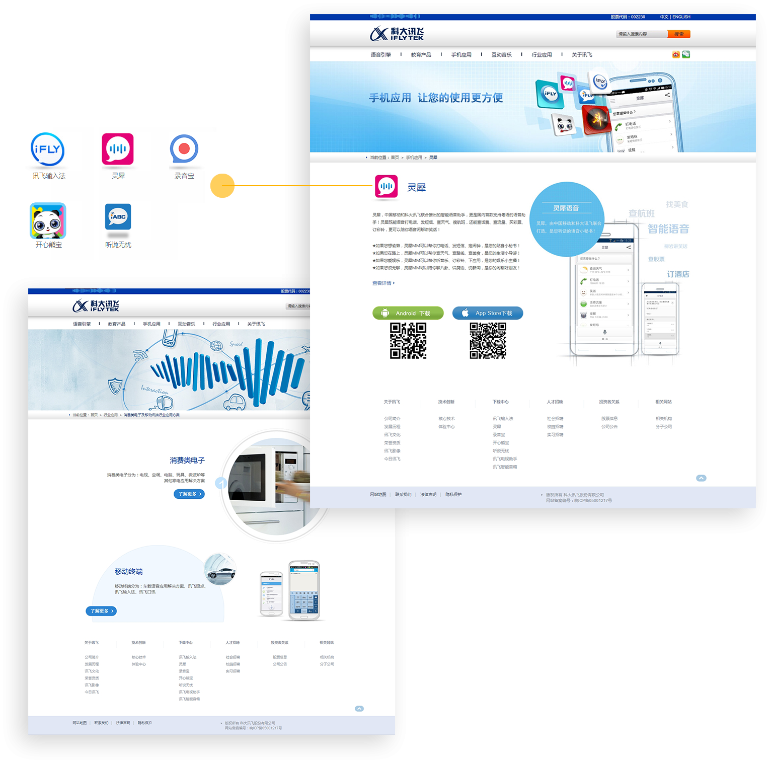 網(wǎng)站以藍(lán)色為主要色調(diào),以“語(yǔ)音引擎-教育產(chǎn)品 -手機(jī)應(yīng)用-互動(dòng)音樂(lè)-行業(yè)應(yīng)用-關(guān)于訊飛”為主要欄目導(dǎo)航, 既宣傳了產(chǎn)品,又樹(shù)立了企業(yè)品牌形象,同時(shí)取得了和用戶進(jìn)行相關(guān)語(yǔ)音產(chǎn)品知識(shí)普及的互動(dòng)效果,幫助語(yǔ)音技術(shù)在互聯(lián)網(wǎng) 開(kāi)辟了新的傳播陣地。