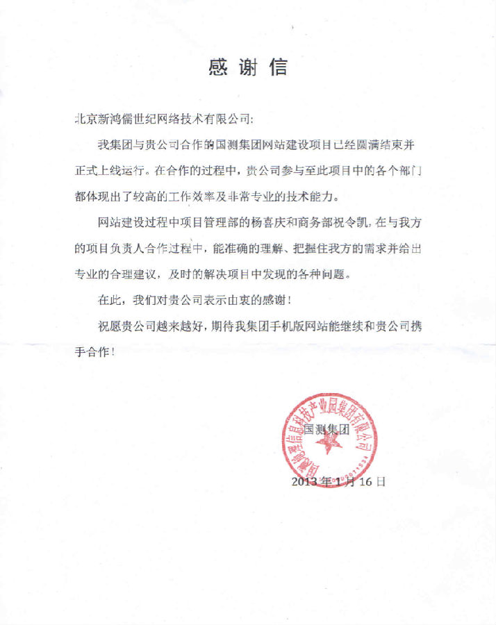 經(jīng)過(guò)新鴻儒整個(gè)項(xiàng)目團(tuán)隊(duì)的不懈努力, 國(guó)測(cè)集團(tuán)網(wǎng)站終于如期上線(xiàn)了。