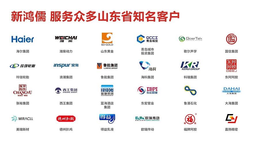 山東省一直是新鴻儒華東市場的重要區(qū)域,近年來新鴻儒先后服務于:海爾集團、濰柴動力、山東黃金、青島城投集團、歌爾股份、國信集團、玲瓏輪胎、浪潮集團、大海集團、海科集團、魯能集團、科銳集團、東阿阿膠、東宏管業(yè)、張裕集團、西王集團、美瑞新材等多家山東省知名企業(yè),在山東地區(qū)已經積累了良好的品牌口碑,為進一步拓展山東市場份額,加速市場競爭戰(zhàn)略進程,成立山東分公司是新鴻儒內部與山東市場的共同訴求。